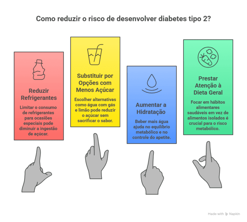 Tomar refrigerante eventualmente não representa, por si só, um fator determinante para o desenvolvimento do diabetes tipo 2. O risco aumenta quando o consumo se torna habitual e frequente.