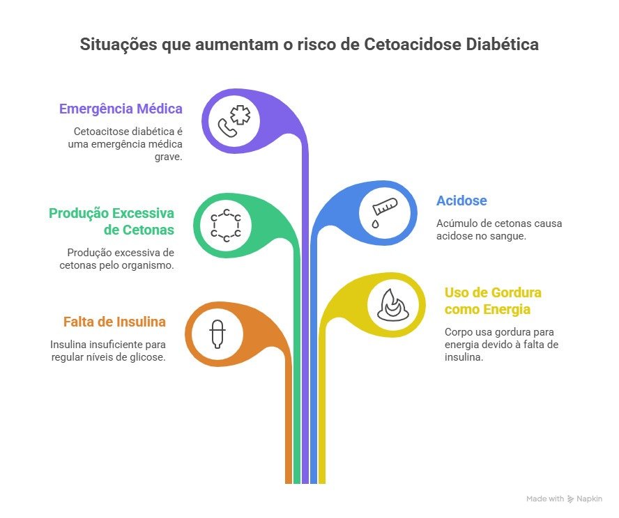Algumas condições aumentam significativamente o risco de desenvolvimento da cetoacidose diabética, tais como: